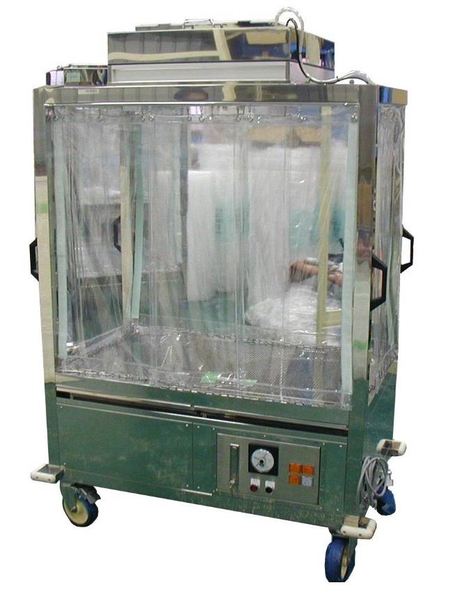 ・清浄な空気を送り込み、装置内の陽圧化を行うことによって、