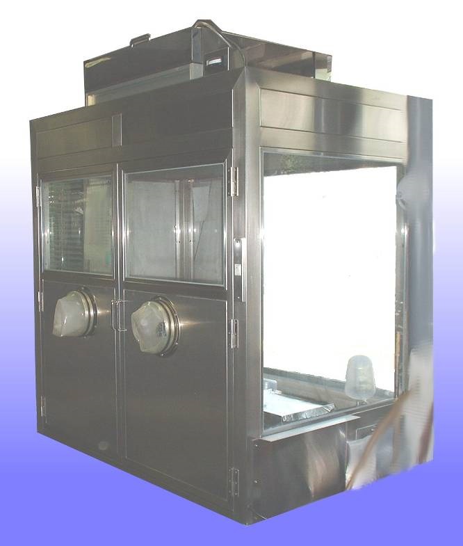 クリーンブース内を陽圧にすることにより外部からの異物混入を