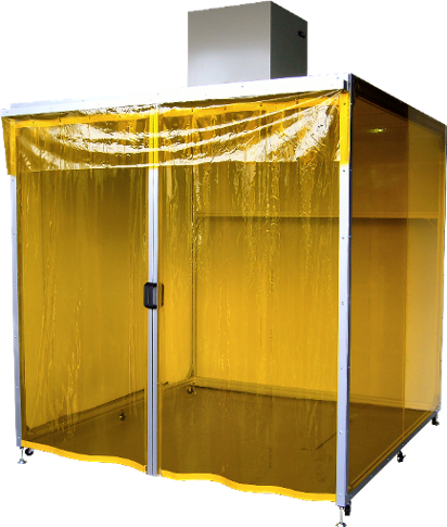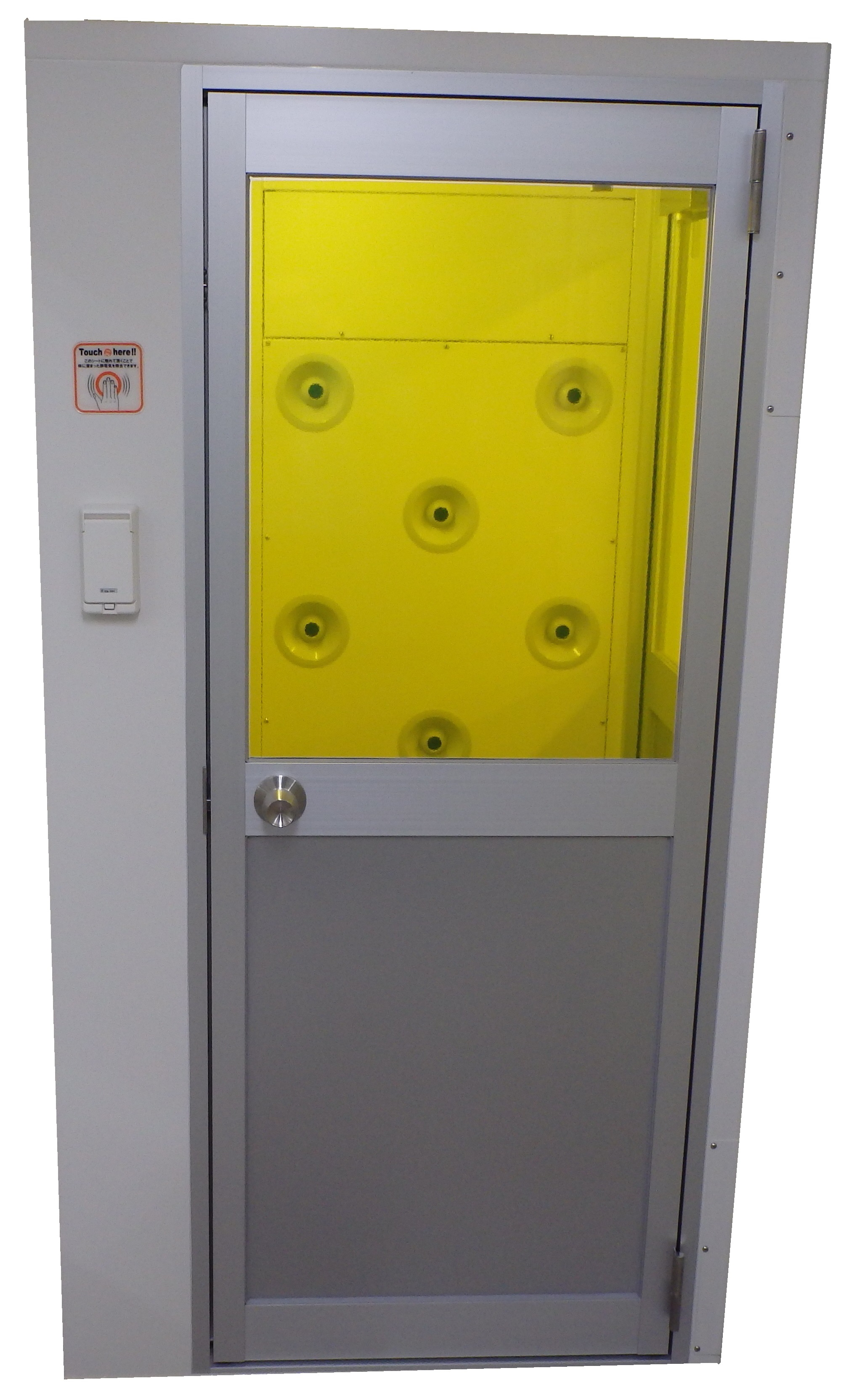 ・エアシャワーの扉の窓にUVカットフィルム(イエロー)