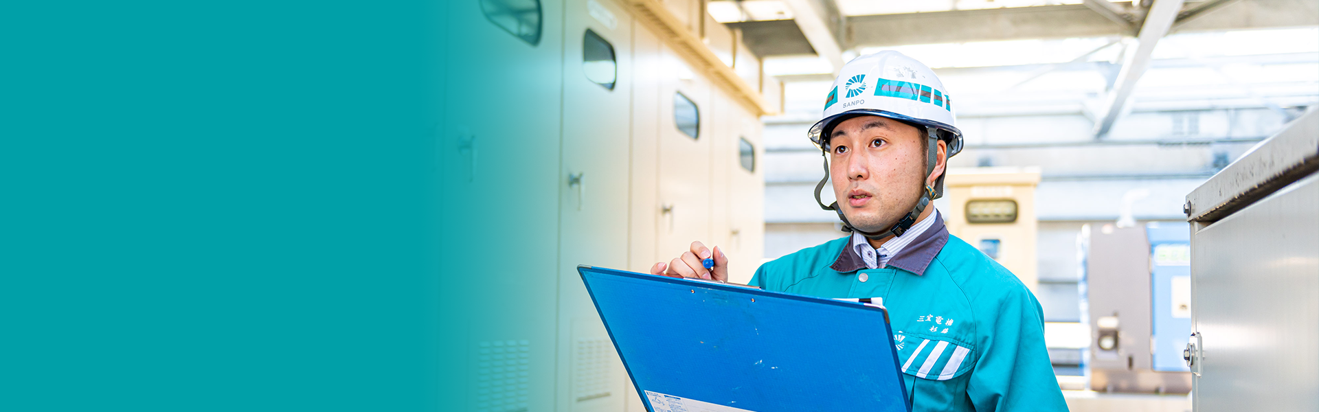 大学で特別高圧の研究に取り組んでいた私は、学んだ知識を活かせる会社に就職したいと考えていました。三宝電機の選考に進んだ理由は、研究していた電気設備が大きな建物でどのように使われているのか興味を持ったからです。選考では実際に施工管理職の方々と話す機会がありました。仕事の流れや苦労すること、やりがいに感じることなど、リアルな話を聞くことができ、純粋に「面白そう」と思い入社を決めました。現在はガス製造プラントの建設に携わっており、電気盤の設計および、電気工事の企画・施工管理を担当しています。