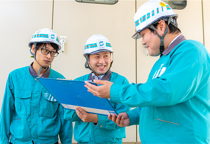 仕事のやりがいは設計・計画した工場が無事に稼働したときです。プロジェクトは長いもので1年半。その間は自社のメンバーや協力会社の方々など、大勢の人と関わります。ときに意見が衝突したり、トラブルが発生したりと、苦労する場面に遭遇することもありますが、完成したときにみんなで達成感を分かち合う瞬間は何度味わっても良いです。また手がけた工場やプラントが社会の役に立っていることにも誇りを感じています。最初は失敗して当たり前です。私もそうでした。しかし、めげずに前を向いていれば上司や先輩、協力会社の方々が必ず助けてくれます。皆さんも消極的にならず、何事も貪欲にチャレンジしてください!