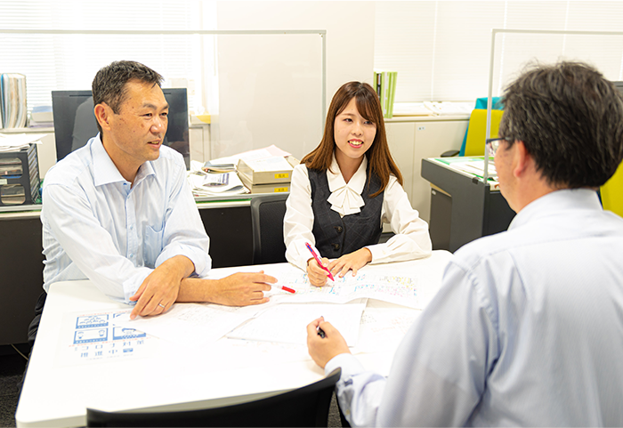 事務職で入社した私ですが、電気工事士の試験に合格したことをきっかけに2年目から総合職に転換しキャリアを歩んでいます。業務としてはCADを用いて電気設備の設計図を作成するほか、積算を担当しています。今でこそ建物の用途に応じてコンセントの場所や配線のルートを決めたり、必要な材料の費用を算出したりしていますが、最初は何が何だかまったく分かりませんでした。そんな私をサポートしてくれたのは、丁寧な研修であり、親身に相談に乗ってくれた周囲の方々です。意欲のある社員を決して見捨てないのは、入社して気づいた当社の大きな魅力だと考えています。