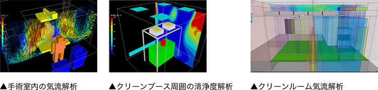 環境解析シミュレーションソフトにより、気流・温度・湿度・クリーン度を測り、お客様に最適な環境空間を提案しております。